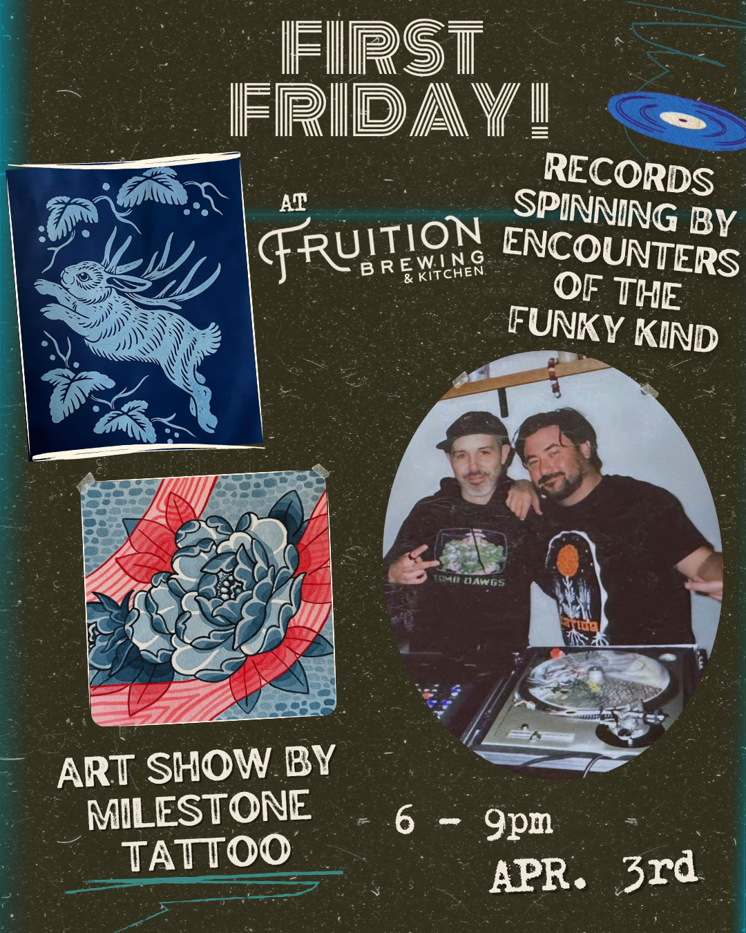 FIRST FRIDAY! DJ + ART TAKEOVER Friday, April 3, 2026 6:00 PM 9:00 PM 18:00 21:00 Google Calendar ICS